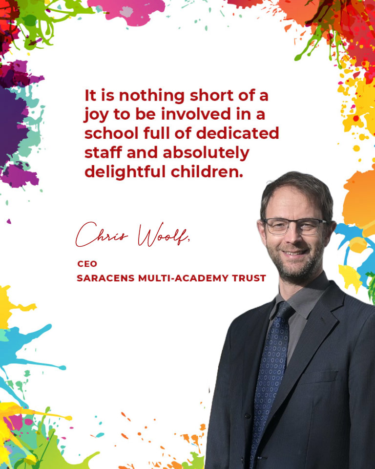 At Saracens Bell Lane, we aim to provide a strong foundation for a happy life, to build upon moral purpose, develop character, build cultural capital, make memories and achieve. We encourage all children to have high expectations for themselves, respect each other, celebrate diversity and become independent learners. We support them to fulfil their true potential.